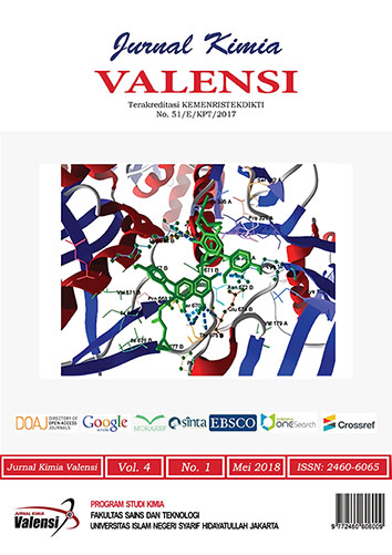 Jurnal Kimia VALENSI is a journal published by Chemistry Department, Faculty of Science and Technology, UIN Syarif Hidayatullah Jakarta. The journal aims to disseminate cutting-edge research in all areas of chemistry both theoretical and experimental studies. Jurnal Kimia VALENSI provides readers with original research articles and reviews.